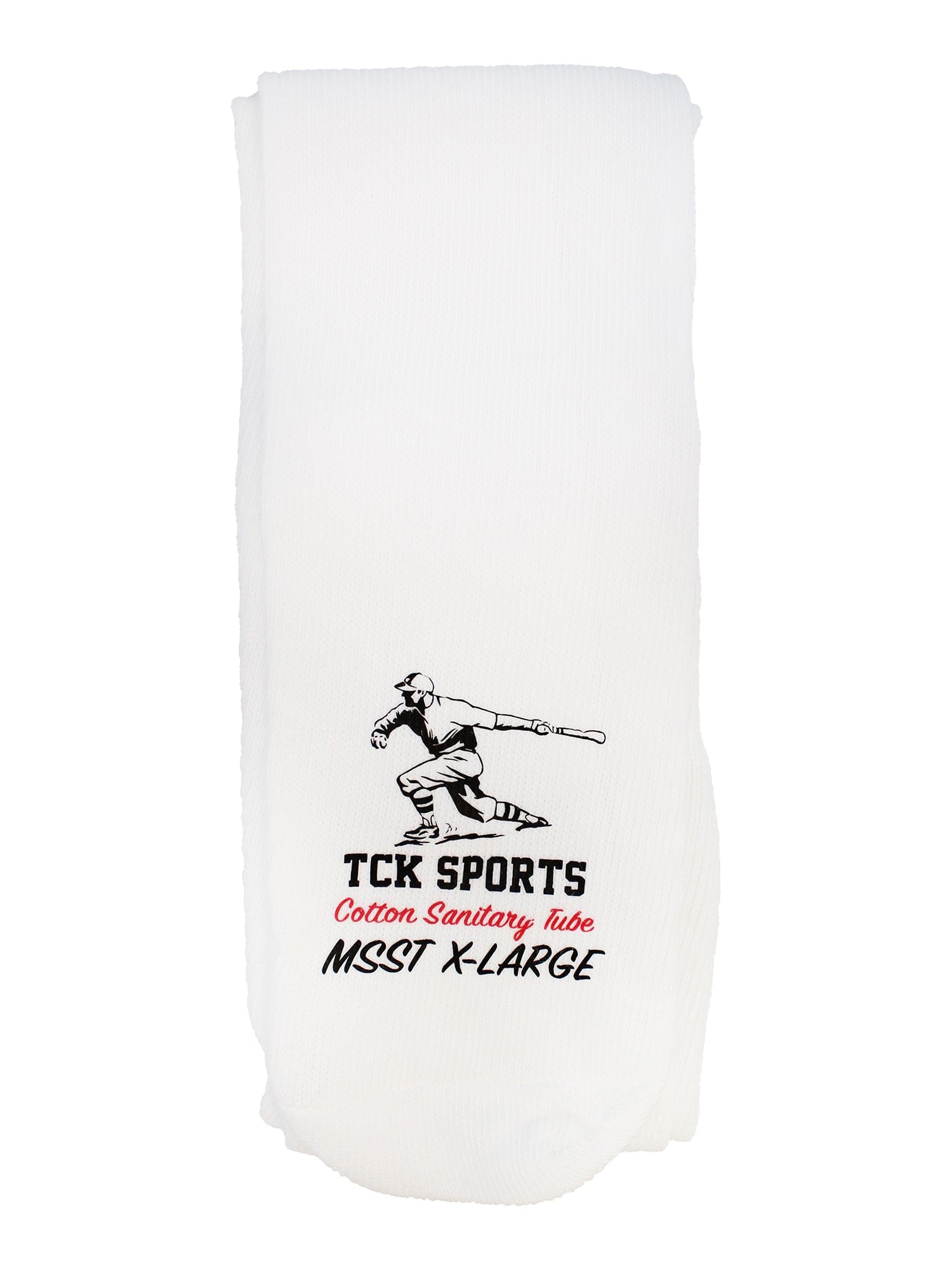 - PERFECT SANITARY SOCKS: TCK created a classic sanitary sock. This basic white cotton/nylon blend tube sock is knit thin and designed to be worn underneath traditional stirrups (the higher the cut on the stirrup, the more the sock shows through). These sanitary socks are made for men or women and to be used for baseball, softball or fastpitch.