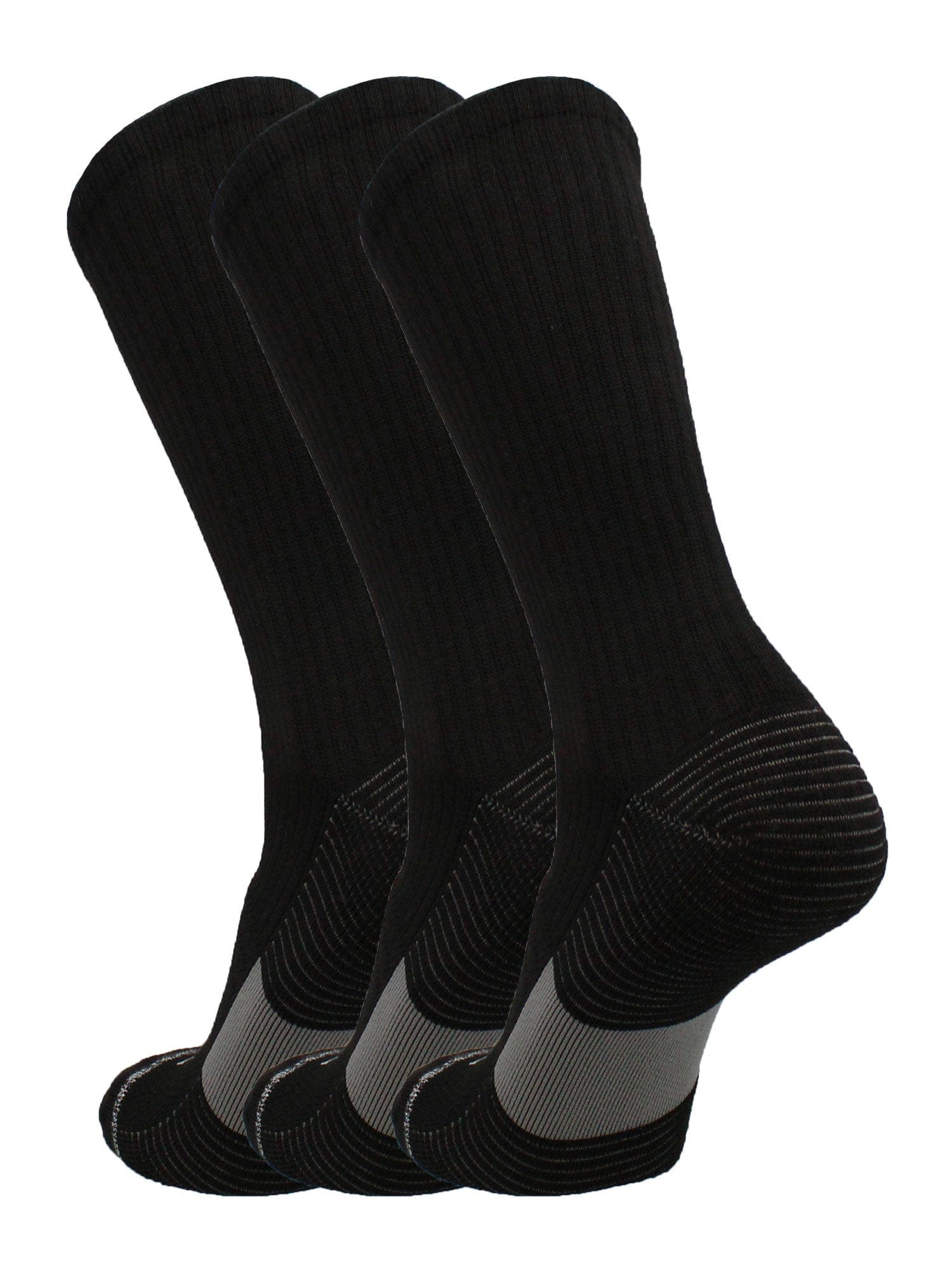 TCK Performance Basketball Socks are engineered for performance, style, & comfort. Great for basketball, volleyball, football and lacrosse. This 3-pack multi-pack is economical, but is a high quality product that does not feel cheap. They are eco-friendly as they are made with Repreve yarns which are produced from recycled plastic bottles and other recycled materials. When purchasing TCK products, you can feel proud to support a USA based company that directly supports American employees.