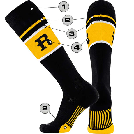 Explore our range of custom over-the-calf socks, designed for those seeking additional support and coverage. They're a perfect fit for sports teams, outdoor activities, or simply staying warm during cooler months. Personalize them with your team’s emblem, your business logo, or a design that represents you. Perfect for baseball, softball, soccer, football, field hockey and more!