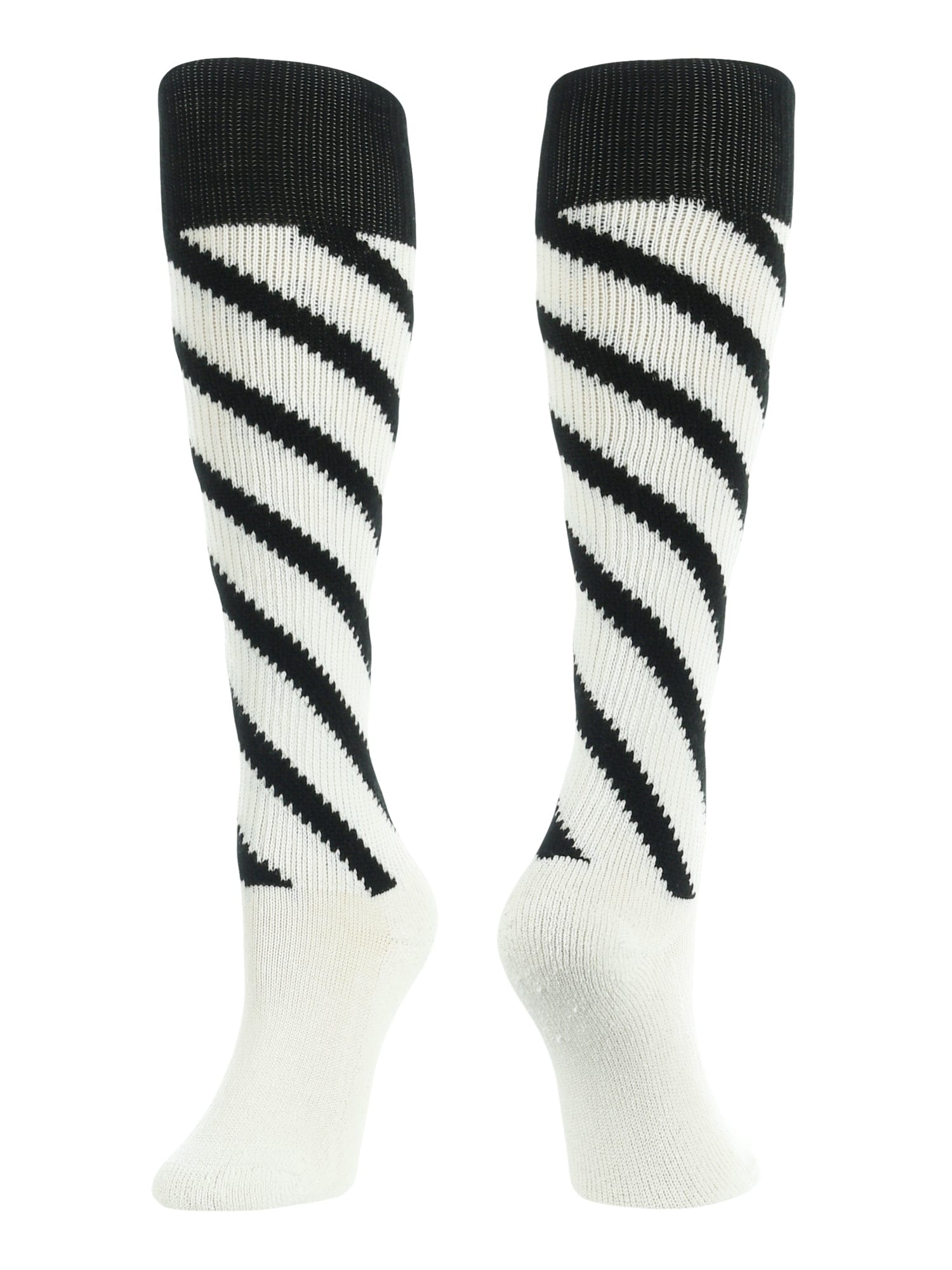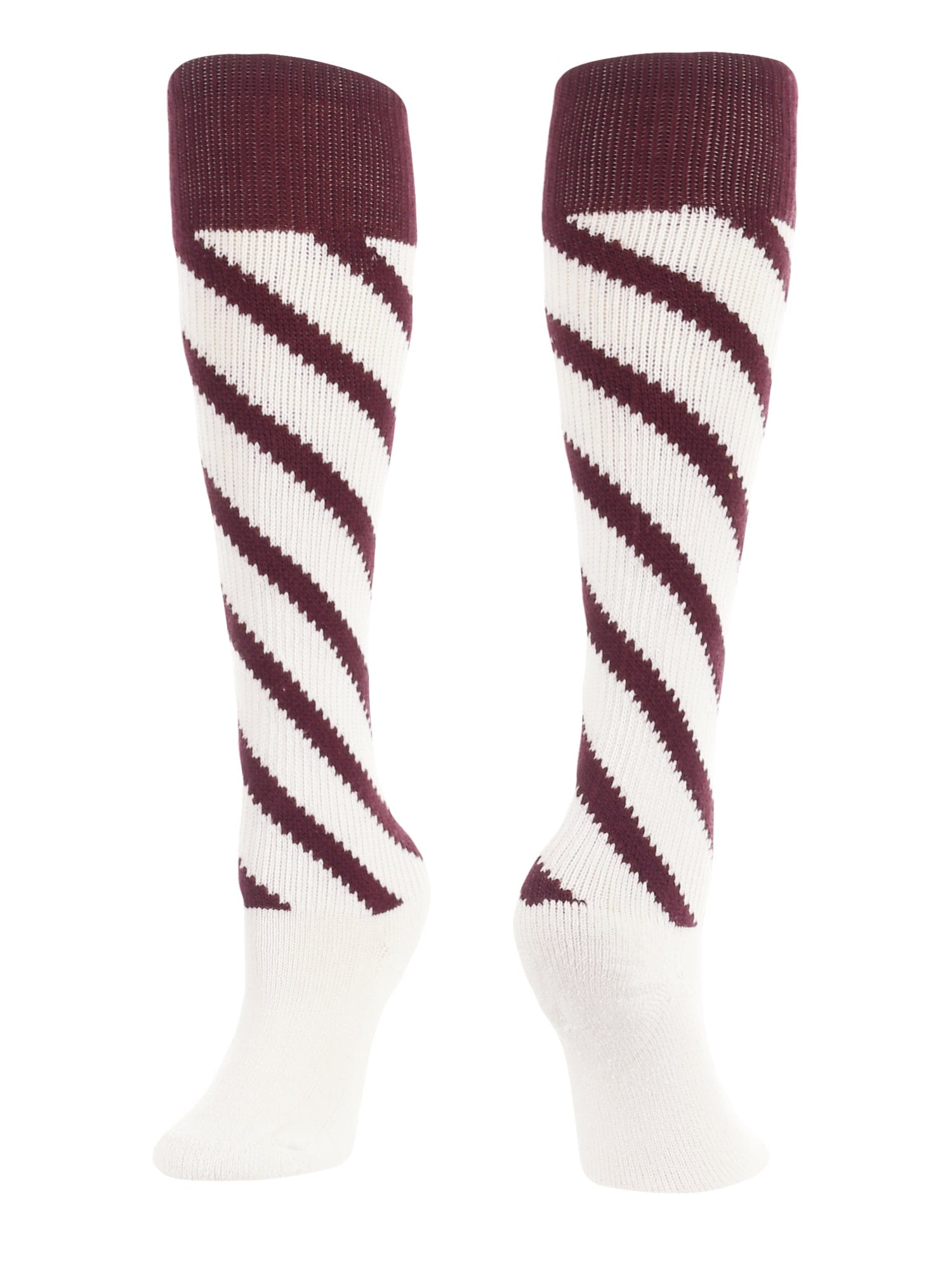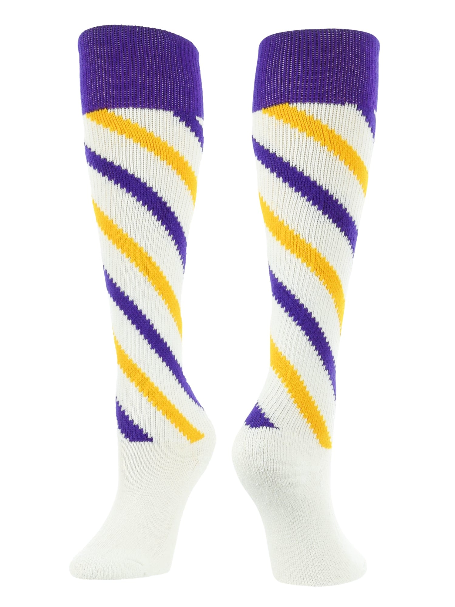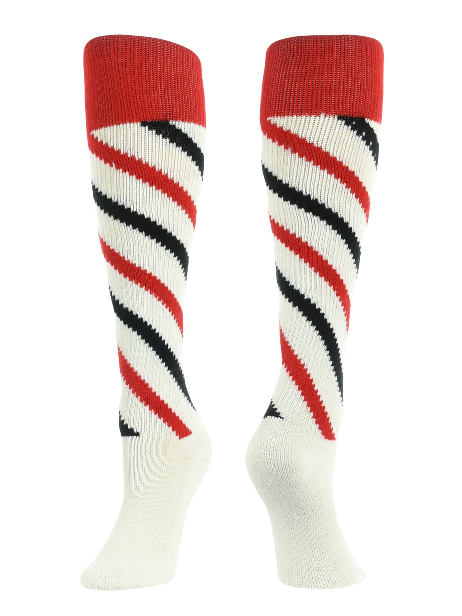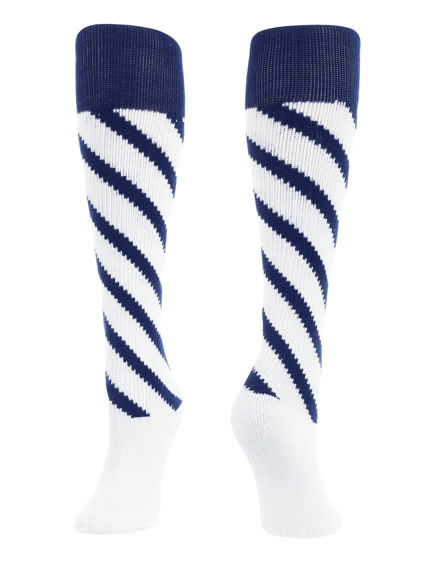 Candy Stripe Knee High Softball Socks in over the calf length. These high performance over the calf athletic socks feature classic wrap around tornado stripes. Made for girls or boys for baseball, softball, fastpitch, tee ball, or even soccer! Founded in 1961, TCK socks are manufactured with pride in the USA.