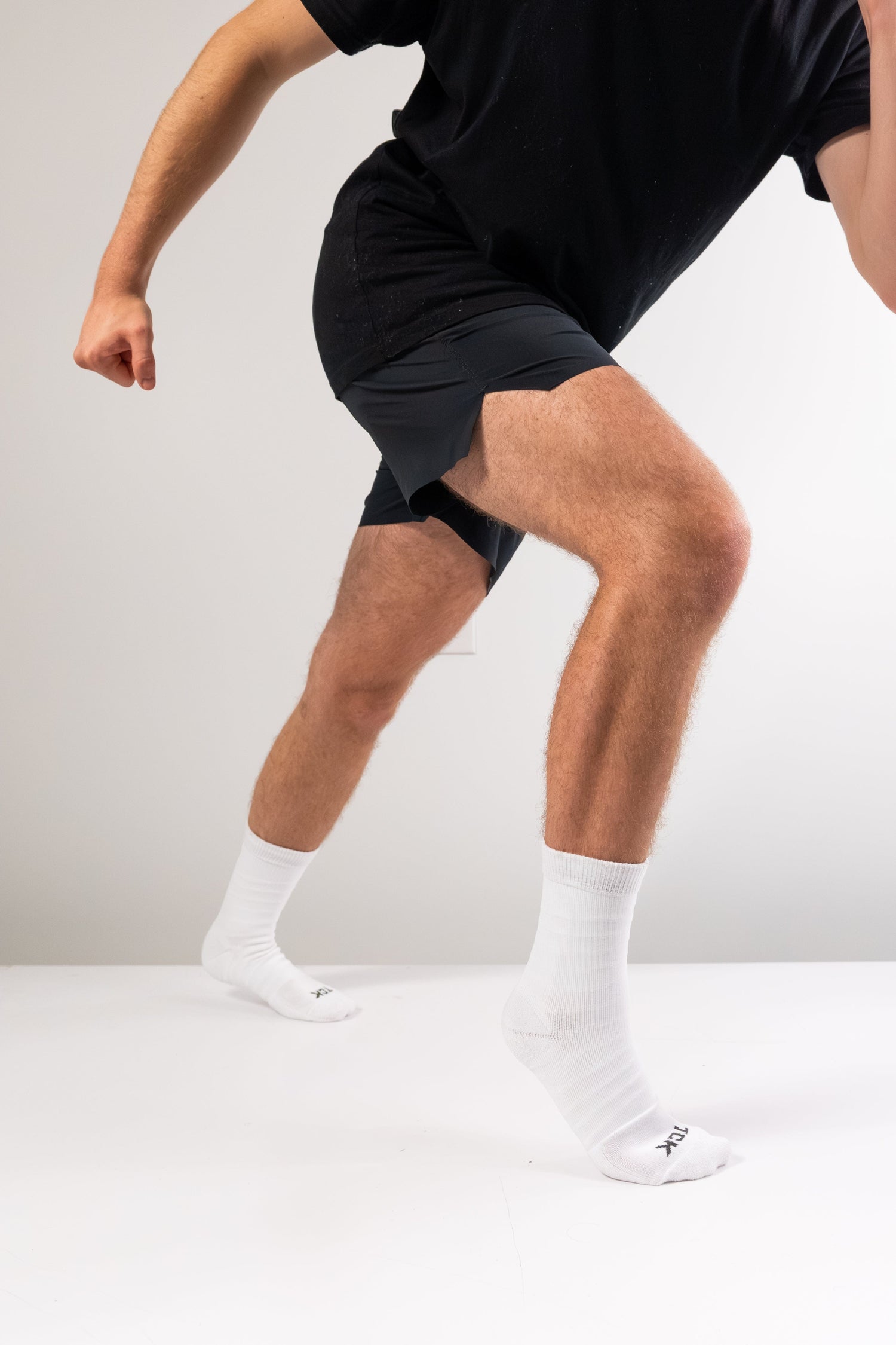 TCK ankle support socks designed to mimic the benefits of taping your ankles. These socks offer robust support for high-impact sports like basketball, football, tennis and more. These compression socks offer firm support, maintain a comfortable fit and flexibility, allowing a full range of motion for running, jumping, and quick direction changes. Crafted from high-quality, breathable material, these socks keep your feet cool and dry. Made in the USA. TCK was founded in 1961 in North Carolina.