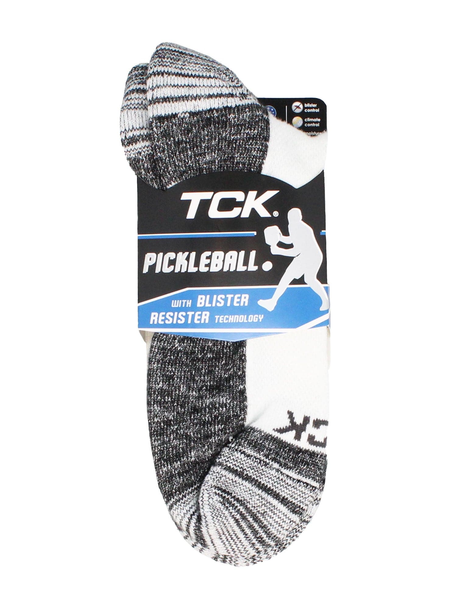 TCK Pickleball Quarter Socks are engineered for performance, style, & comfort. Featuring a fully cushioned foot, blister prevention mohair yarn, and a double welt top, they provide maximum athletic performance and blister resistance. These socks are suitable for both men and women. These socks are great for pickleball, tennis, basketball, training, running, tennis, golf & more! Founded in 1961, TCK socks are manufactured with pride in the USA.